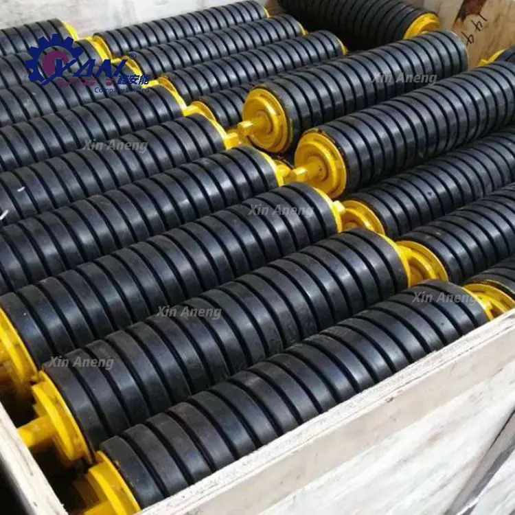 3. Spaziatura della disposizione: diversi tipi di rulli trasportatori in acciaio hanno requisiti di spaziatura della disposizione diversi. Ad esempio, la spaziatura dei rulli di conca non deve essere maggiore di 1200 mm e deve essere fornito un set di rulli di centraggio superiore ogni 10 gruppi di rulli di conca (disposizione di spaziatura normale); la spaziatura di disposizione dei rulli paralleli non deve essere maggiore di 3000 mm e devono essere disposti ogni 8 gruppi di rulli di ritorno. È presente una serie di rulli di centratura inferiori; i rulli buffer sono installati nell'area di carico del nastro trasportatore per alleviare l'impatto dei materiali sul nastro trasportatore. I rulli buffer sotto la canalina di guida sono disposti a una distanza di ≤600 mm.